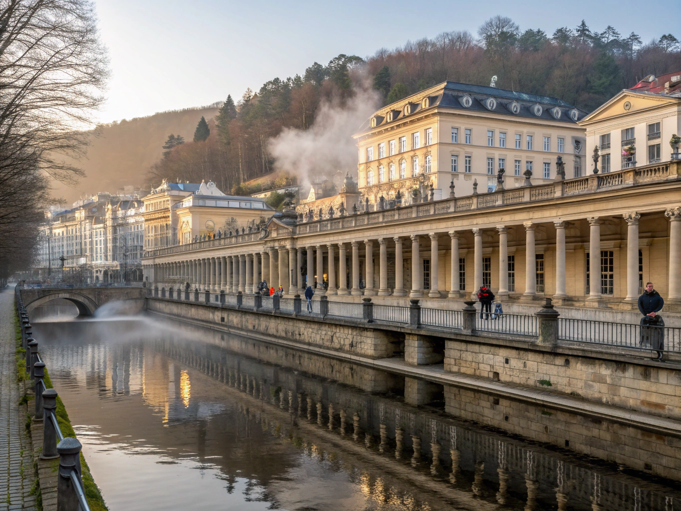 Explora dos joyas de Bohemia: el encantador pueblo medieval de Český Krumlov y las famosas aguas termales de Karlovy Vary, acompañados por paisajes únicos.